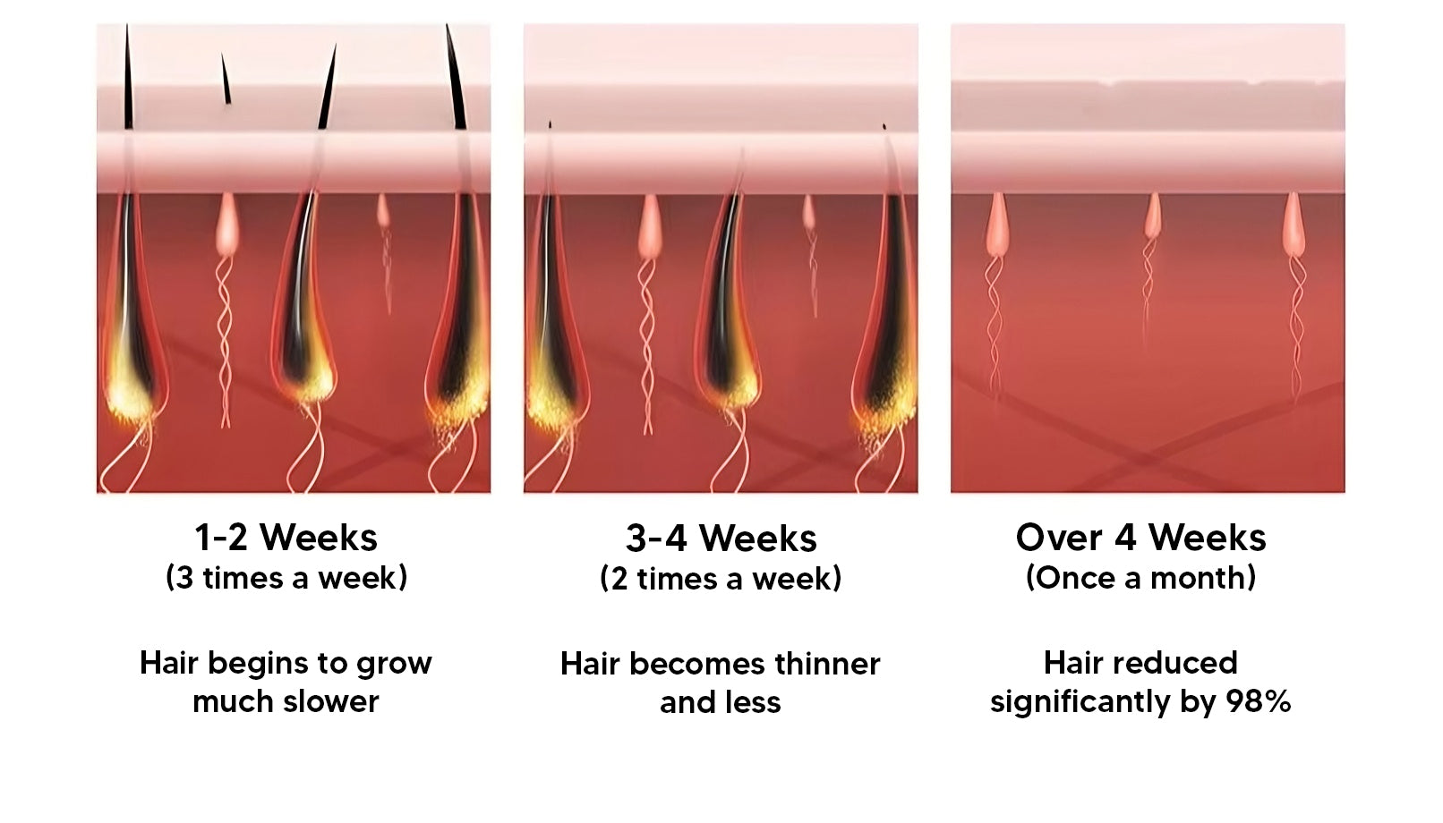 • 98% hair reduction in just 4 weeks